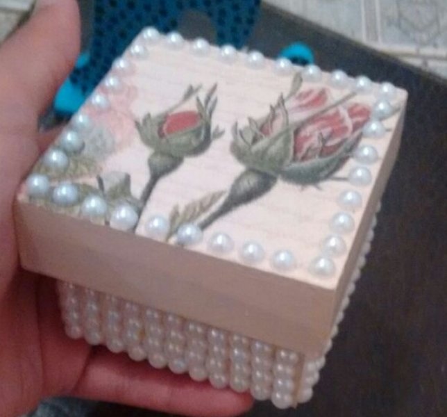 Caixinha em mdf Decorada, Rosa Com Pérolas.